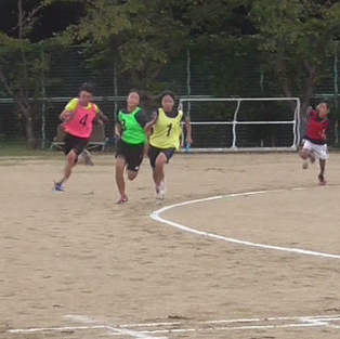 新型コロナウイルスの影響でいろいろなイベントが中止になる中、クラブ員が楽しめるイベントを開きたいと考え、9/26(土)にファインプラザ大阪で第1回羽曳野RC・大阪狭山SC記録会を行いました。大阪府の大会は速い子が参加しますが、自身のない子は参加しずらい雰囲気があります。しかし、この記録会は2つのクラブのみでいつものメンバーが多く参加するためみんなが参加できることを目的としました。また、いつもは練習してない走り幅跳びやジャベリック投げなども選択して参加すること、当日の100mの記録でチーム分けするリレーなど自分の好きなことを選び、同じ能力の子が競い合えるのも大切にしました。練習に参加している中学生や大人の飛び入りもOKにしました。